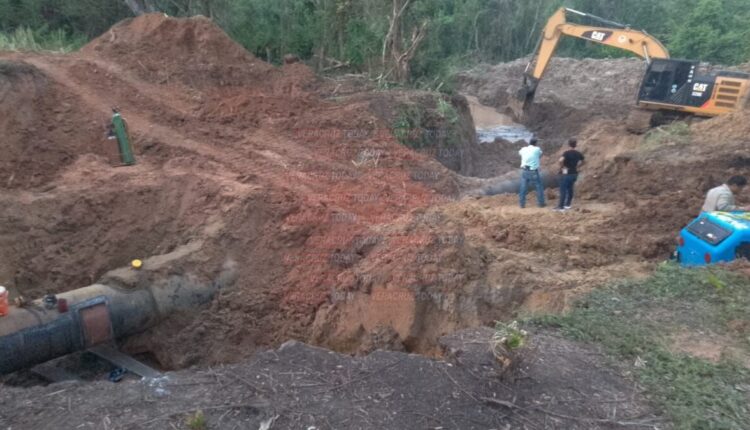 Este viernes poco después del mediodía se completarán los trabajos de reparación de una fuga en la línea de 48 pulgadas que conecta la presa Yuribia con Coatzacoalcos, ubicada a la altura de El Jobo en Chinameca.