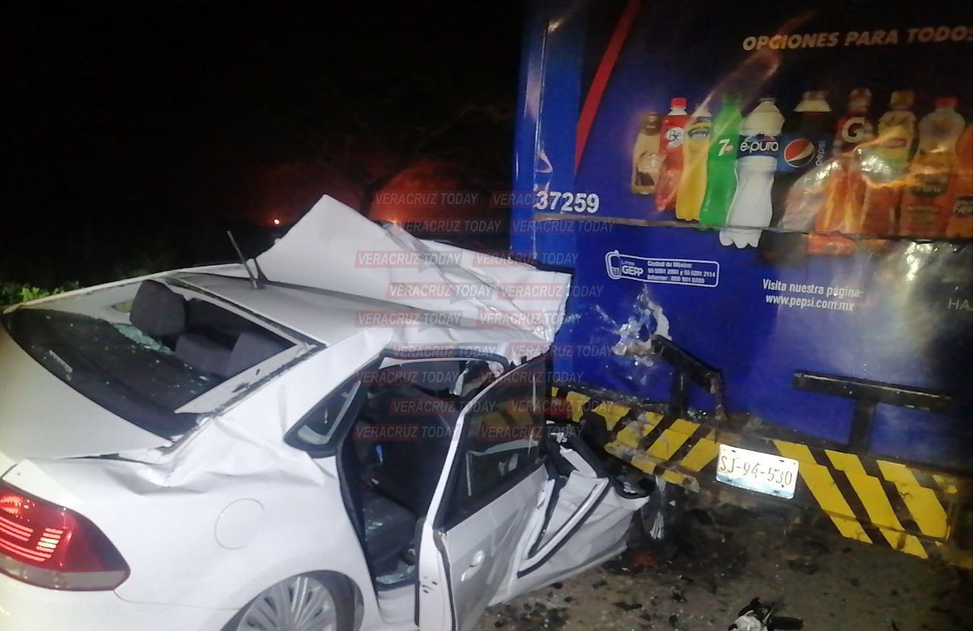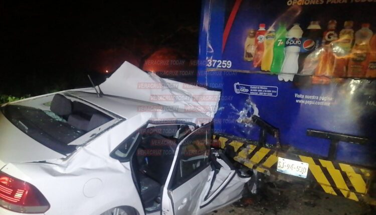Una mujer quedó prensada al interior de su vehículo, tras impactarse en la parte trasera de un camión repartidor de refrescos de la empresa Pepsi, sobre la carretera Coatzacoalcos- Minatitlán “Las Matas”, durante la noche de este martes 18 de julio.