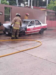 Fue sobre la calle Porfirio Díaz en la colonia 20 de Noviembre dónde comenzó a incendiarse parte del motor del taxi 1229 de este municipio, corriendo rápidamente las llamas que alcanzaron parte del tablero y asientos. En cuestión de minutos el persona de protección civil y bomberos apagaron las llamas.