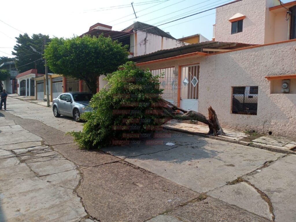 Casas inundadas, socavones, árboles y postes caídos, así como techos desprendidos y bardas colapsadas, fueron las afectaciones que dejó la tormenta eléctrica registrada la noche del martes 30 de mayo en municipios del sur de Veracruz.