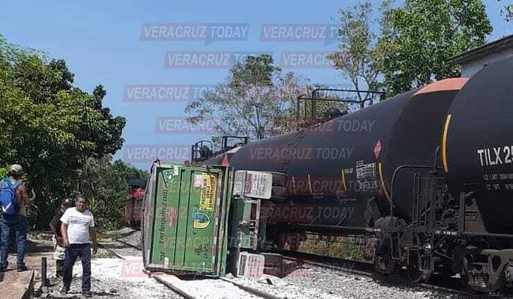 Oteapan, Ver. – Un tráiler de doble remolque que pertenece a la empresa COVIA, fue arrastrado por el tren luego de que el chofer intentará ganarle el paso a la altura de la estación que divide a los municipios de Oteapan y Chinameca al sur de Veracruz la tarde de este lunes cuatro de septiembre. El chofer se salvó de milagro y resultó con ligeros golpes.