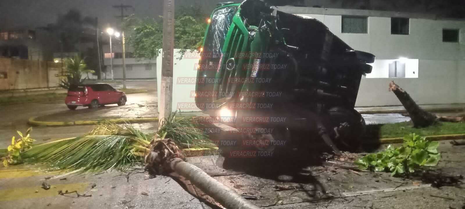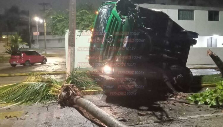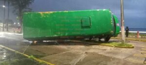 Coatzcoalcos, Ver. – Un autobús de transporte público, terminó volcado hacia un costado, luego de que se impactara contra una palma de coco al momento en que transitaba por el malecón ribereño de Coatzacoalcos; por este hecho no se reportan lesionados y el chófer escapó.
