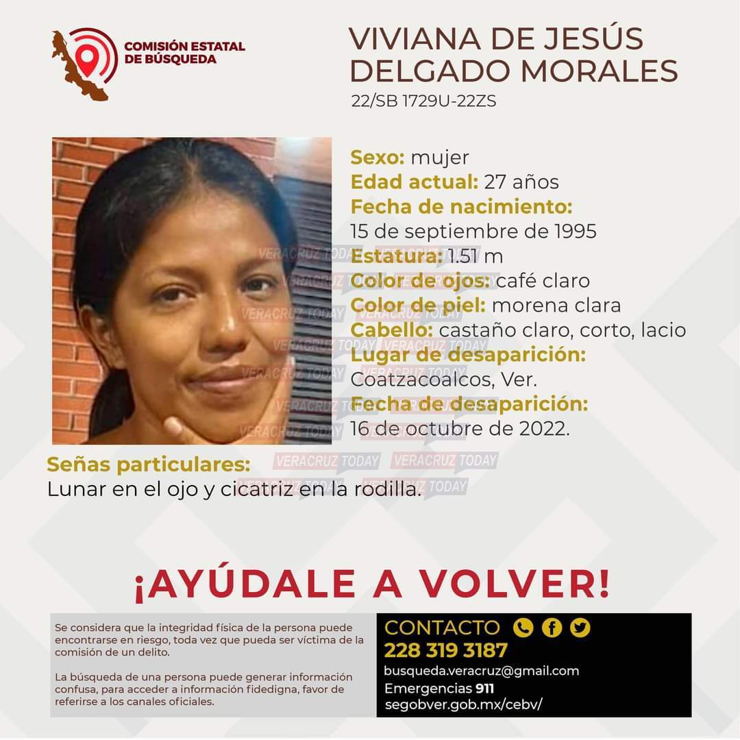 Coatzacoalcos, Ver. – Se han cumplido dos días de que Viviana de Jesús Morales Delgado de 27 años se encuentra desaparecida; familiares señalaron que previo a su desaparición mantuvo contactó con un usuario de redes sociales desconocido, por lo que temen que le haya pasado algo o su vida este en riesgo.