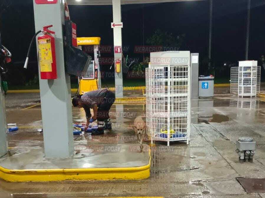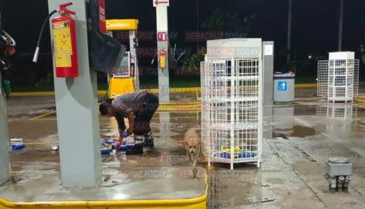 En tanto que en #Cosoleacaque, los anuncios de una gasolinera también salieron volando por las fuertes ráfagas de viento, además de los productos que tienen en exhibición.