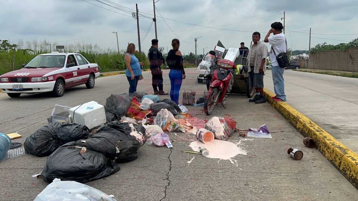 El “pepenador”, presentó raspones en las mansos y piernas, en tanto sobre la vialidad quedó esparcida la basura.