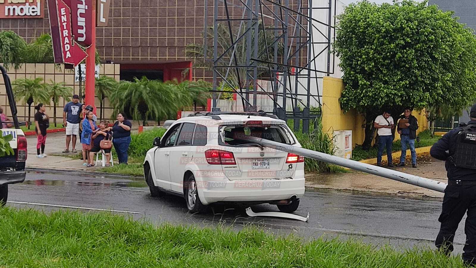 Alfonso de 55 años manejaba su camioneta Journey color blanca sobre la avenida Universidad cuando el poste cayó sobre la unidad #Coatzacoalcos pic.twitter.com/wRtN0mkY2e