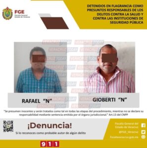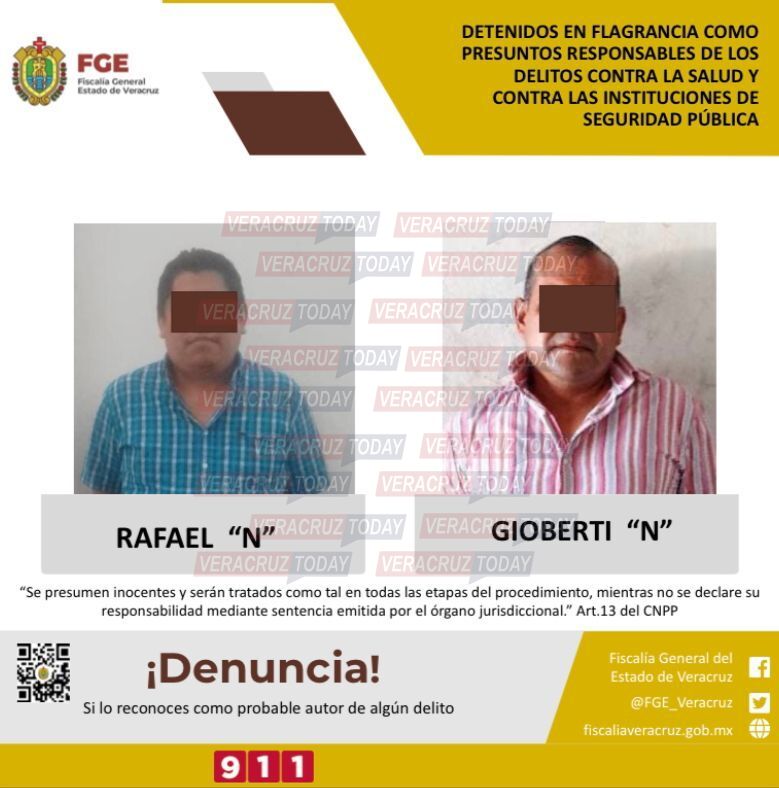 Rafael N y el capitán retirado Gioberti N, fueron detenidos el pasado seis de diciembre en la zona de Barrillas, Coatzacoalcos, en posesión de 130 dosis de marihuana, un arma corta y un arma larga, pero además, «habrían disparado contra los oficiales de la Fuerza Civil», esto de acuerdo con el reporte de los oficiales de la Secretaria de Seguridad Pública.