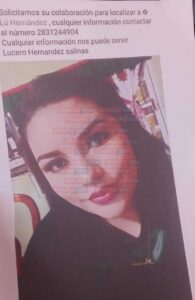 Este martes 3 de enero, familiares y vecinos comenzaron con la búsqueda y entrega de volantes con la imagen de Lucero, principalmente en lugares públicos, para pedir ayuda de las personas. Piden que cualquier información sea proporcionada a través del número 2831244904.